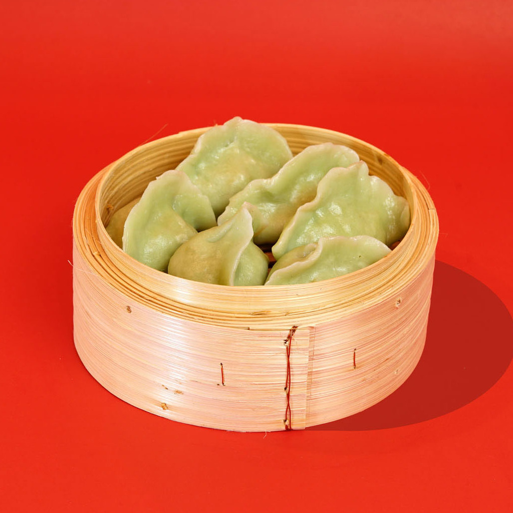 Steamed dumplings filled with chicken, cabbage, cumin